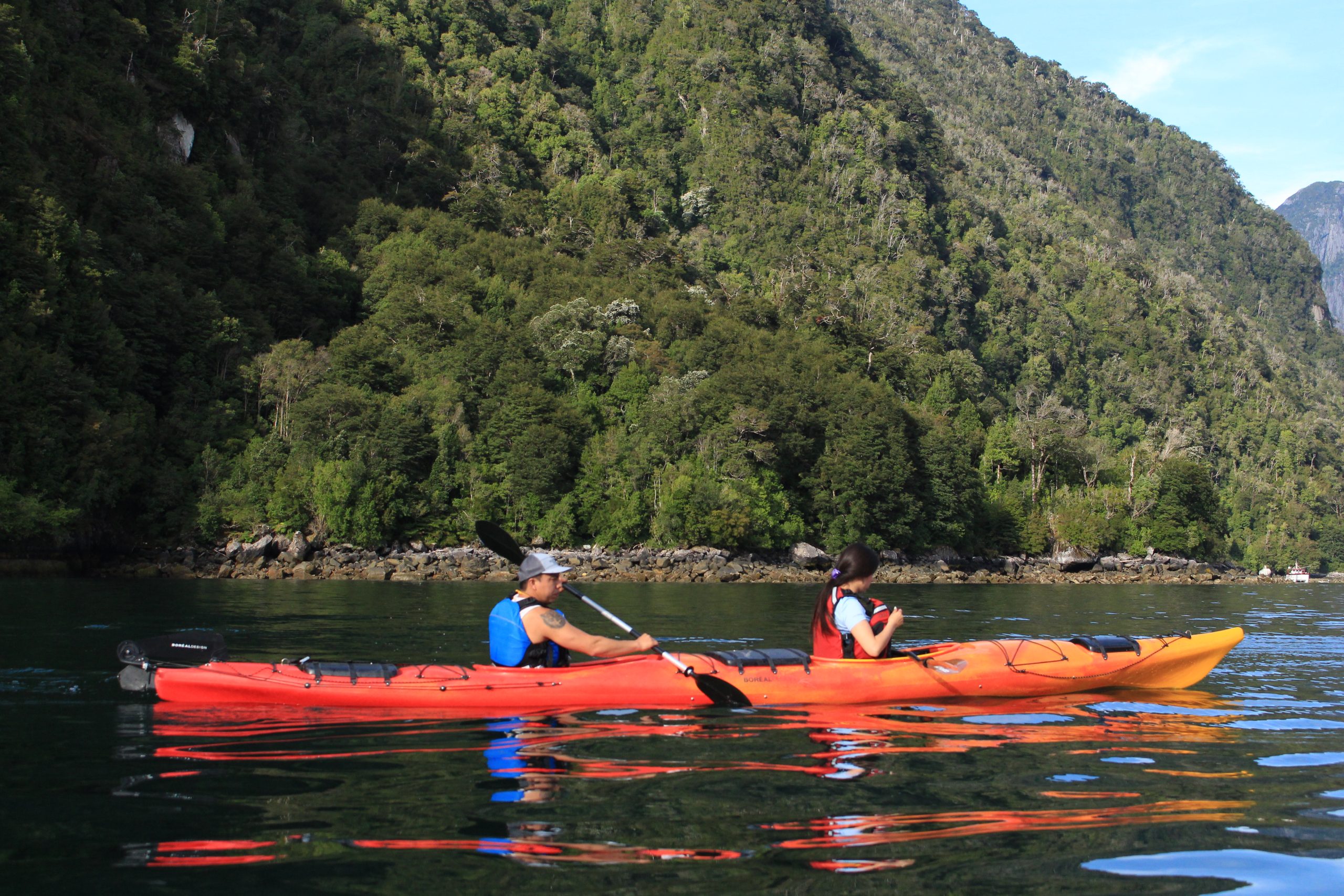 El segundo día intensifica la experiencia con un trekking matutino hacia la espectacular laguna Abascal, donde la aventura continúa navegando en packraft para explorar paisajes únicos y descubrir una imponente cascada. Esta combinación de senderismo y navegación en aguas interiores ofrece perspectivas completamente diferentes del ecosistema patagónico, desde bosques templados hasta espejos de agua cristalina. El programa concluye con una relajada navegación de regreso a Hornopirén, incluyendo la exploración del fiordo Quintupeu, brindando a los participantes una última oportunidad de contemplar la majestuosidad de los fiordos patagónicos antes del final de esta experiencia inmersiva en la naturaleza.